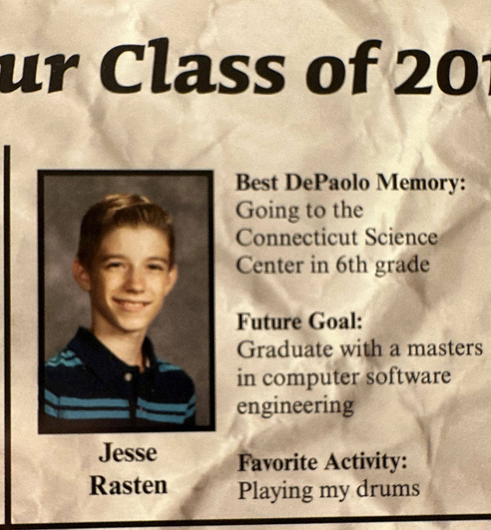 Like most engineers, probably Legos. There's something special about building something new, but what feels even more exciting is taking apart something broken to try to fix it. I've been doing that since I was very little, and by the time I was in middle school I changed what I wanted to be from “Lego master builder" to “software engineer," and here I am now. Just to prove it, here's a picture from my eighth-grade yearbook.